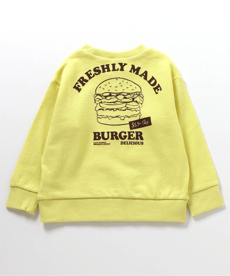 日本 BREEZE - 搶眼配色休閒印花上衣-背後漢堡-萊姆黃