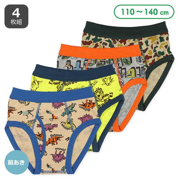 日本西松屋 - 混棉男孩三角內褲(4件組)-恐龍/迷彩-藍黃橘綠