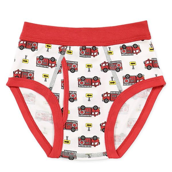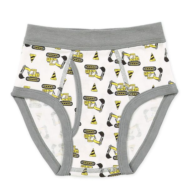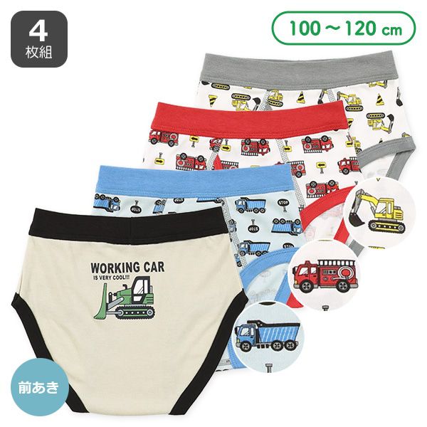 日本西松屋 - 混棉男孩三角內褲(4件組)-滿版工程車-黑藍紅灰