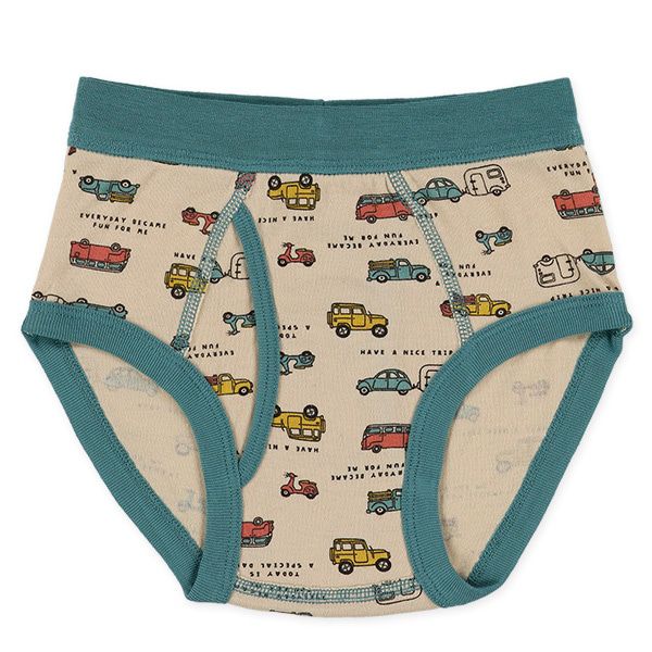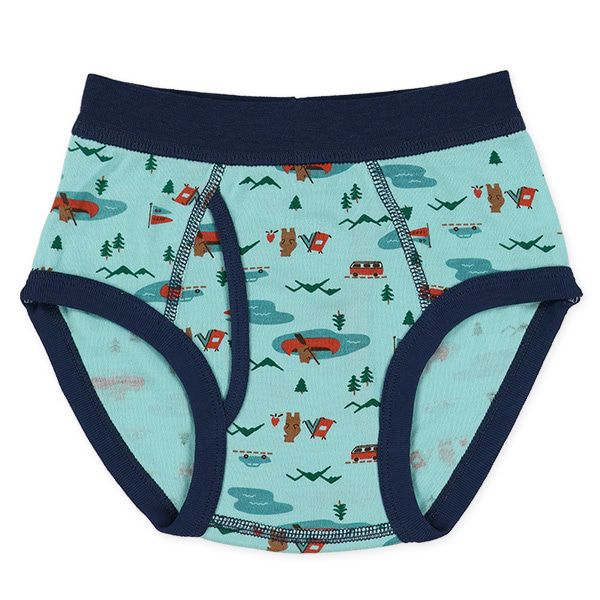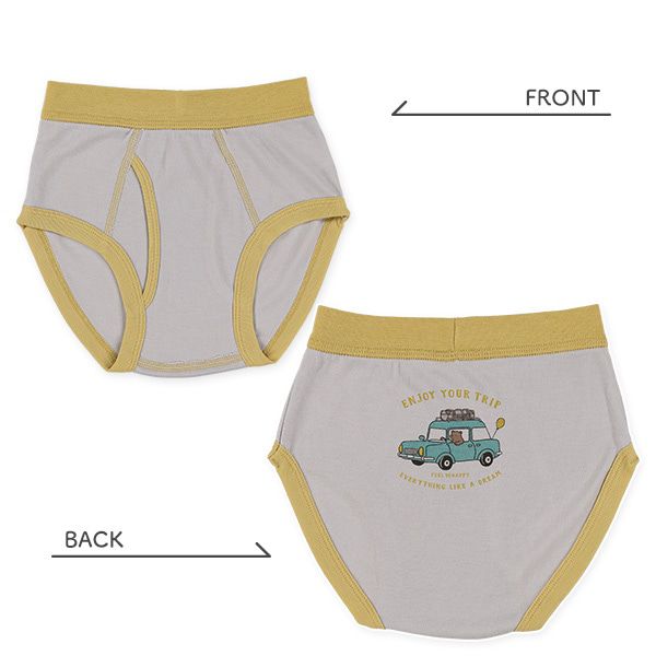 日本西松屋 - 混棉男孩三角內褲(4件組)-車車/露營/小熊-灰綠黃
