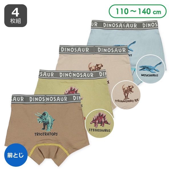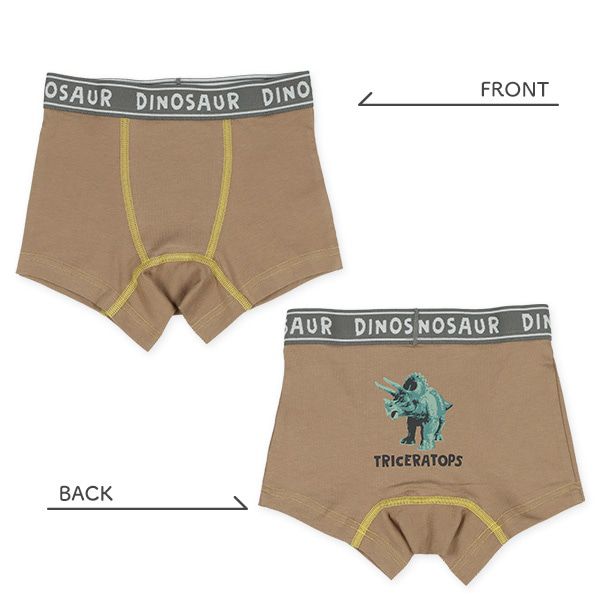 日本西松屋 - 混棉男孩四角內褲(4件組)-一隻恐龍-棕黃藍