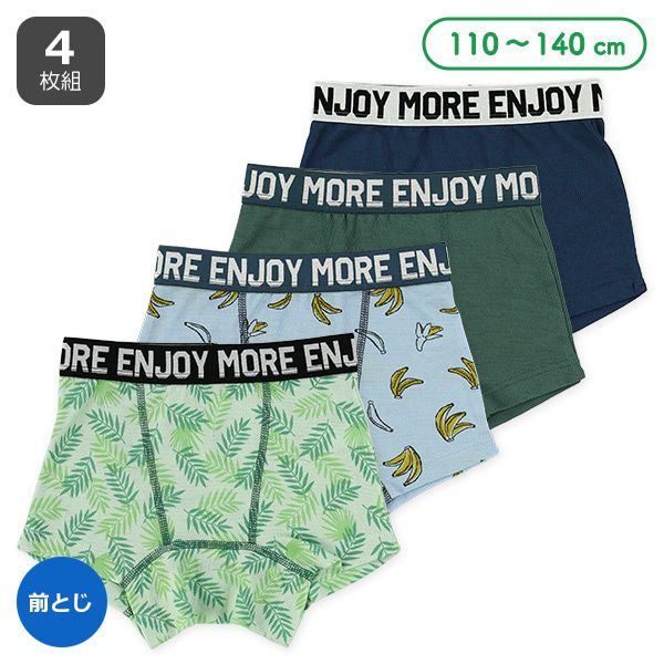 日本西松屋 - 混棉男孩四角內褲(4件組)-棕櫚樹/香蕉/素色-藍綠