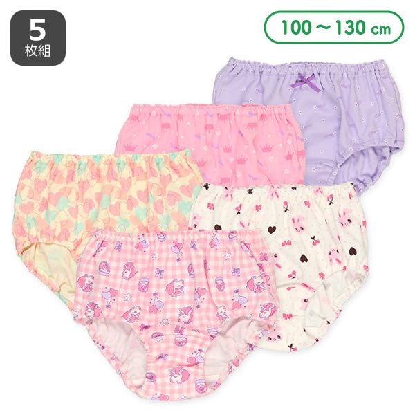 日本西松屋 - 混棉舒適女孩內褲(5件組)-獨角獸/愛心/兔子-粉紅白紫