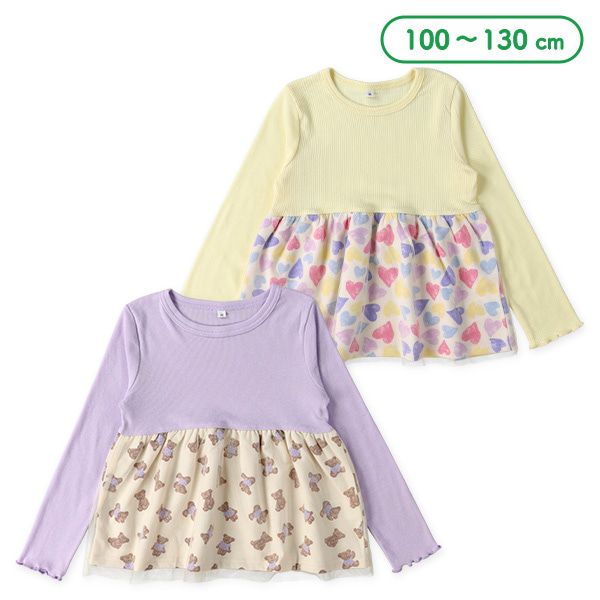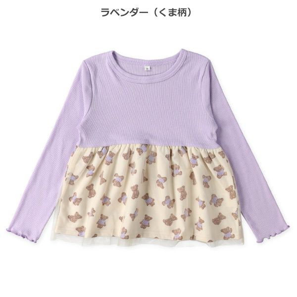 ![日本西松屋 - 華夫格異素材絲帶長袖上衣-白x藍紫]()