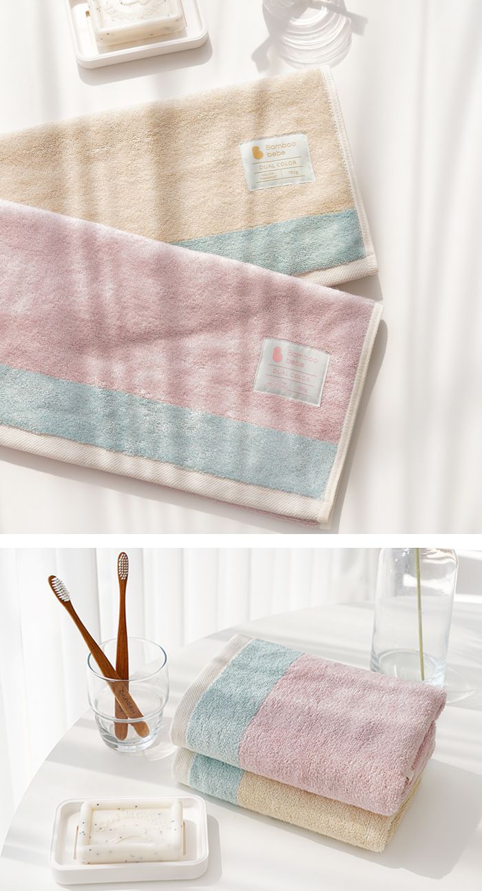 韓國 Bamboo bebe - 超柔軟毛圈竹纖維吸水多用途毛巾-粉X水藍 (40x80cm)