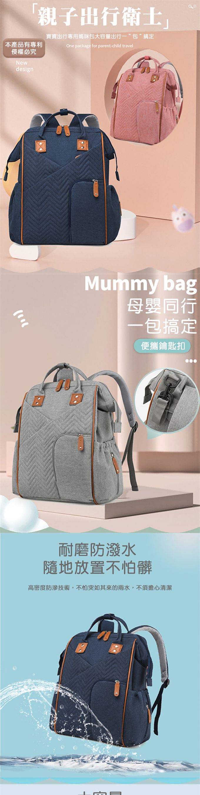 • 品名:LAND大容量媽媽包 大開口後背包 防潑水可掛推車