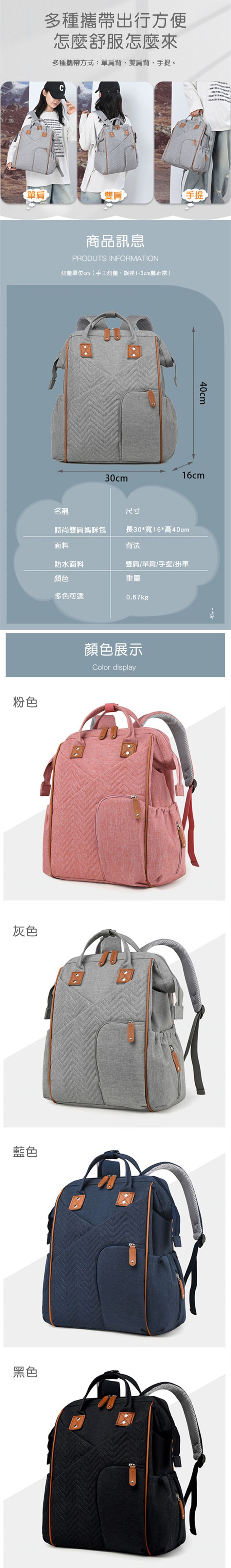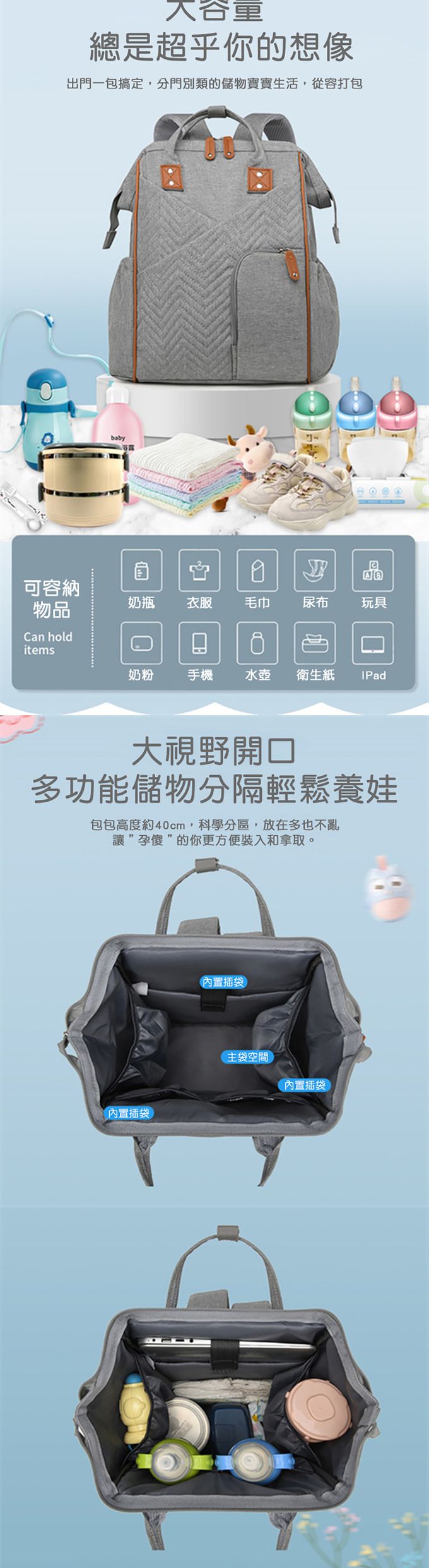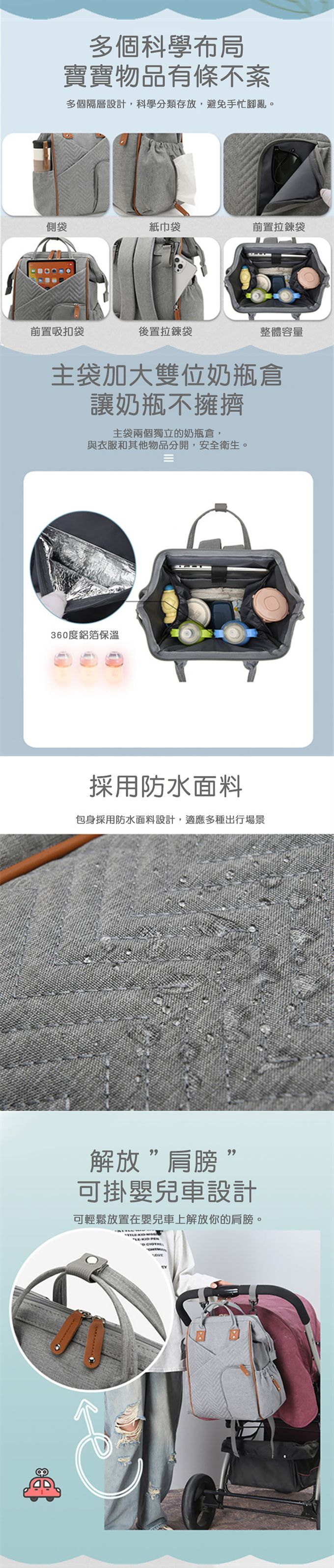 5.雙拉鍊,加寬透氣雙肩背帶,可掛嬰兒車,一包滿足所有需求。