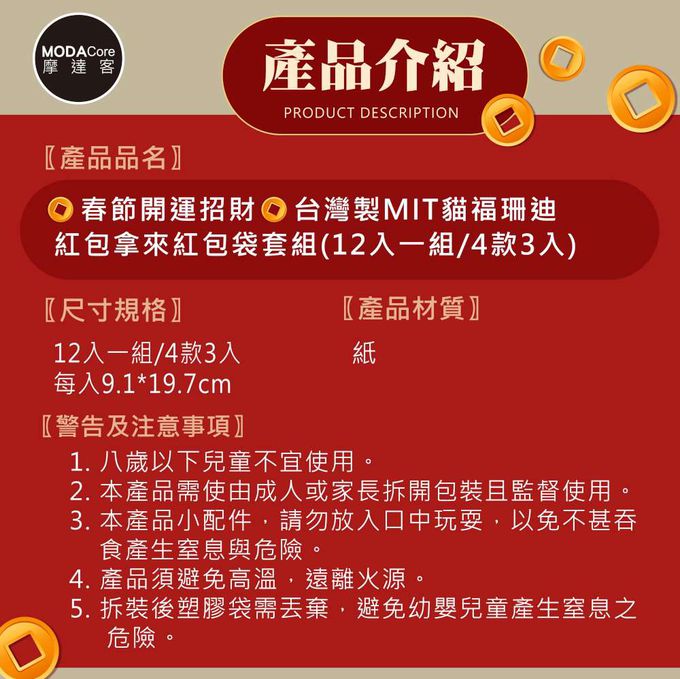 品名:◉春節開運招財◉台灣製MIT貓福珊迪紅包拿來紅包袋套組(12入一組/4款3入)