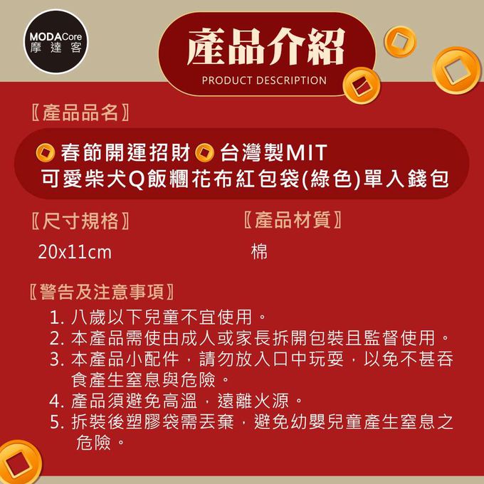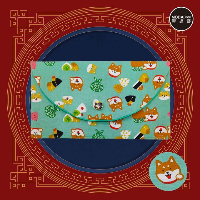 品名:◉春節開運招財◉台灣製MIT可愛柴犬Q飯糰花布紅包袋(綠色)單入錢包