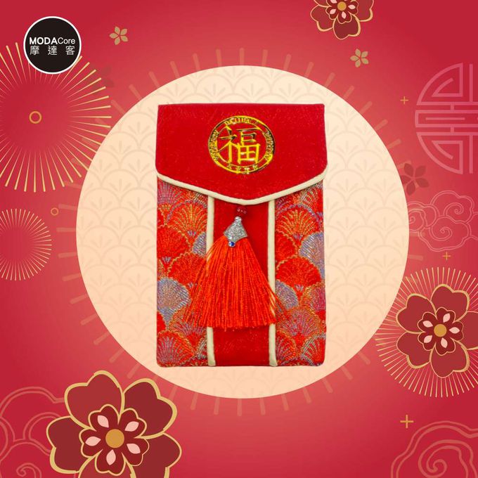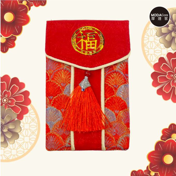 品名:◉春節開運招財◉高級綢緞布直式金福字扇葉流蘇藝術紅包袋錢包/單入