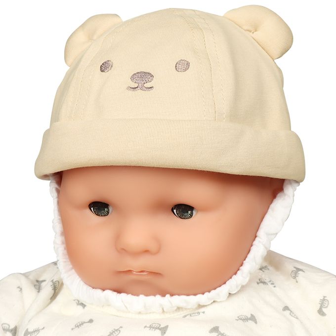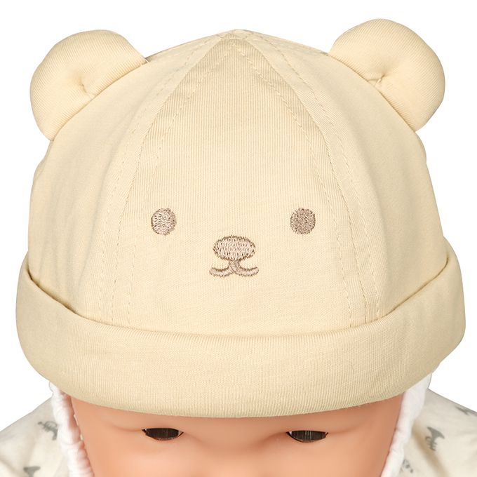 頭上小巧的耳朵和圓滾滾動物臉蛋刺繡為亮點