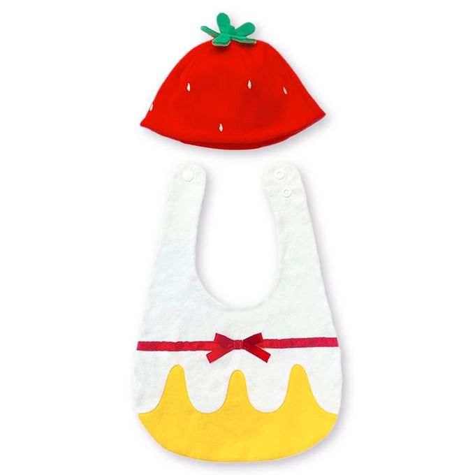 草莓造型帽子和蛋糕造型圍兜的2件組