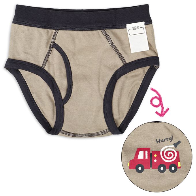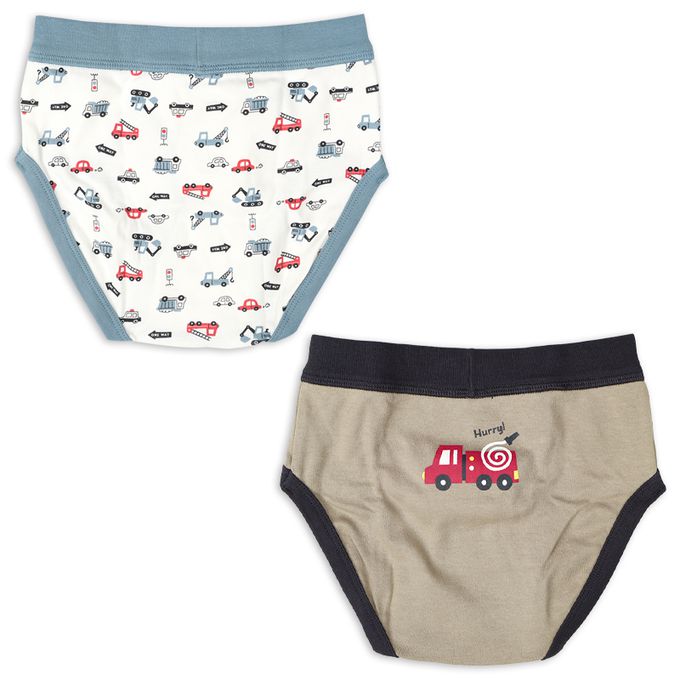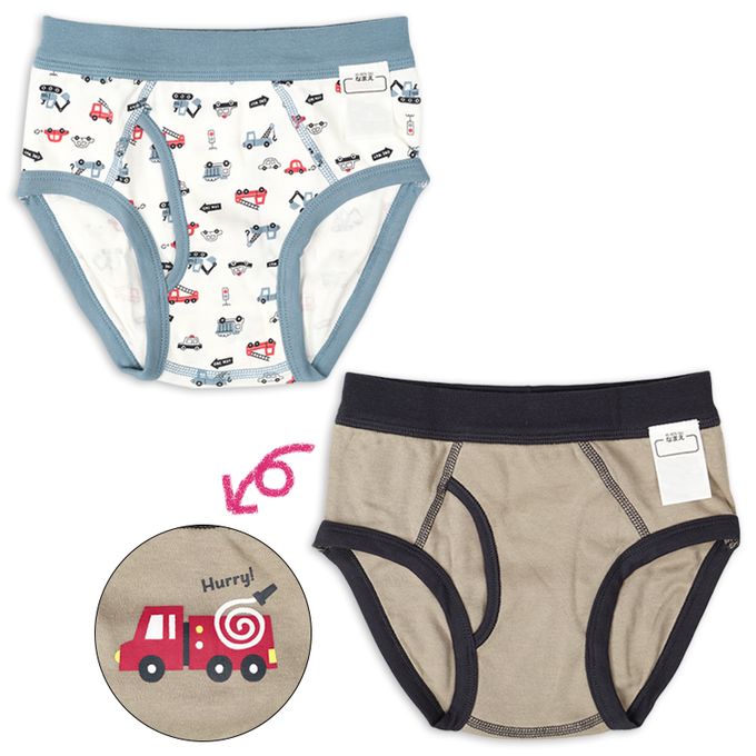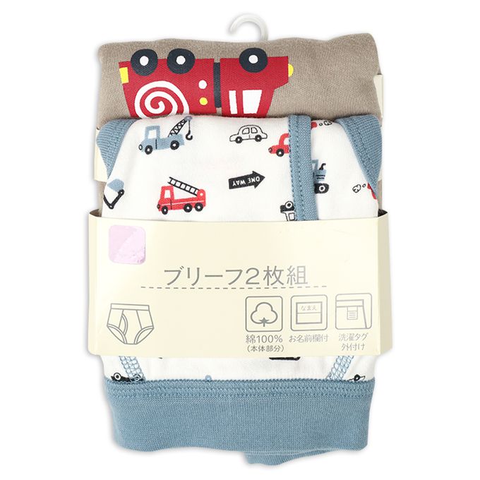 小男孩喜愛的工程車滿版印花和消防車單一圖案的三角褲2件組。