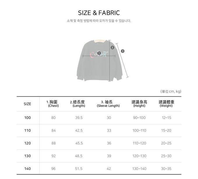 1. 尺寸表單位皆為公分(cm),實際尺寸會因布料彈性、水洗、測量起迄點等因素略有誤差。購買前,建議參考寶貝現有的衣物尺寸做對照。
