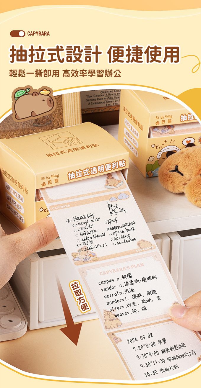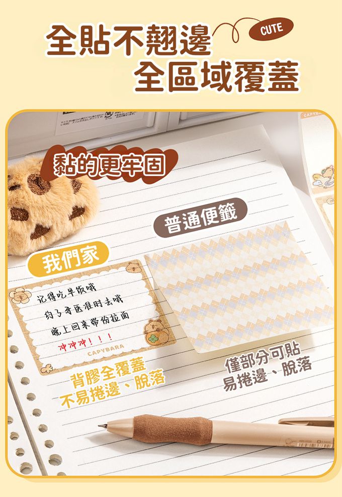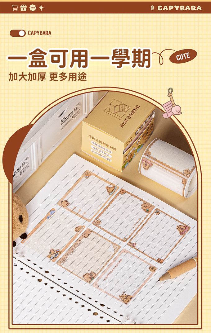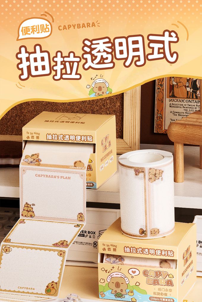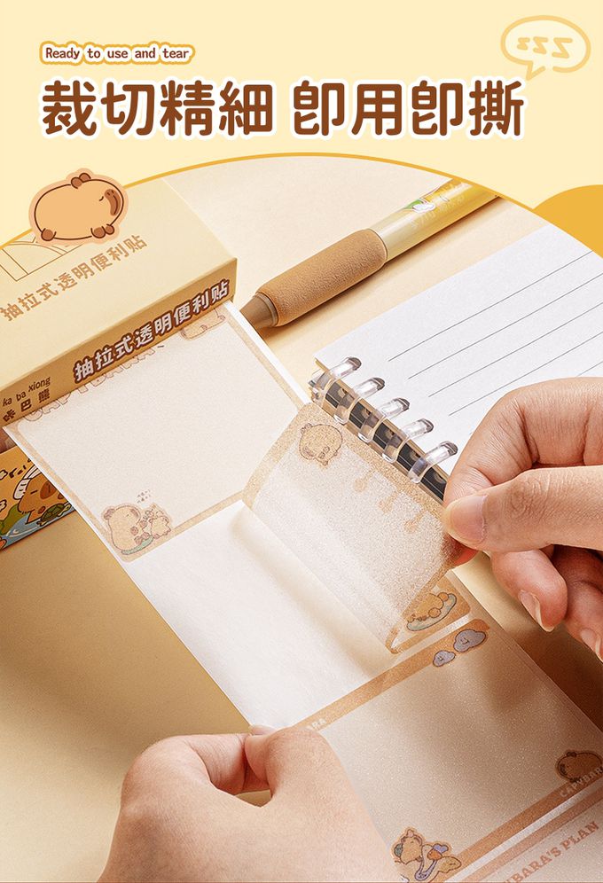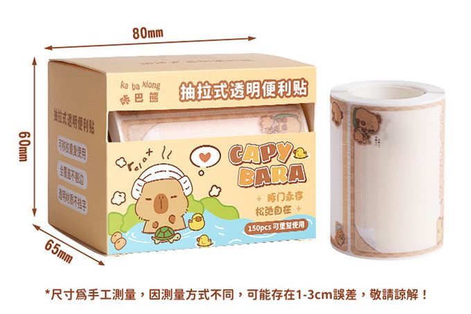 可重複使用抽拉式透明金蔥膜便利貼(共150張)-卡皮巴拉 (單張7x5.4cm)