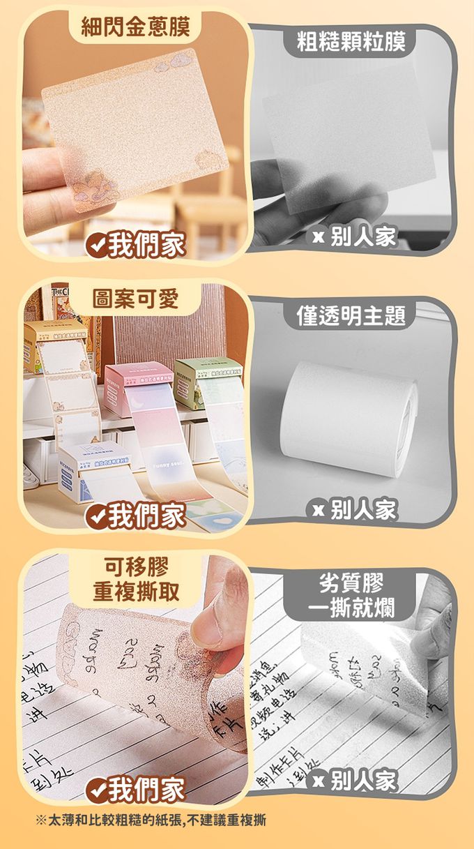 品名:可重複使用抽拉式透明金蔥膜便利貼(共150張)