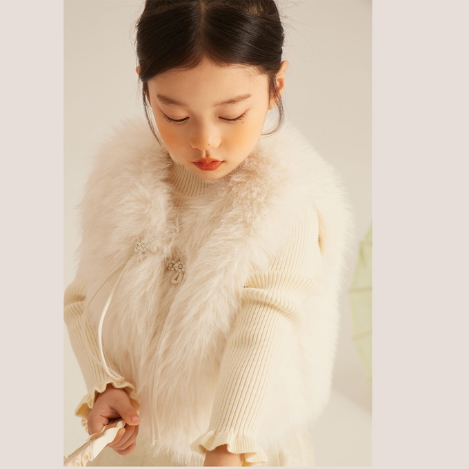 品名:新年服手工高訂仿皮草珍珠盤扣開襟背心配紅色長裙套裝