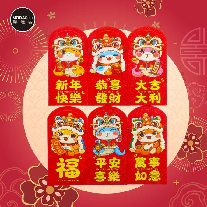 ◉春節開運招財◉質感霧面亮彩獅頭帽Q彩蛇紅包袋套組(12入一組/6款2入)