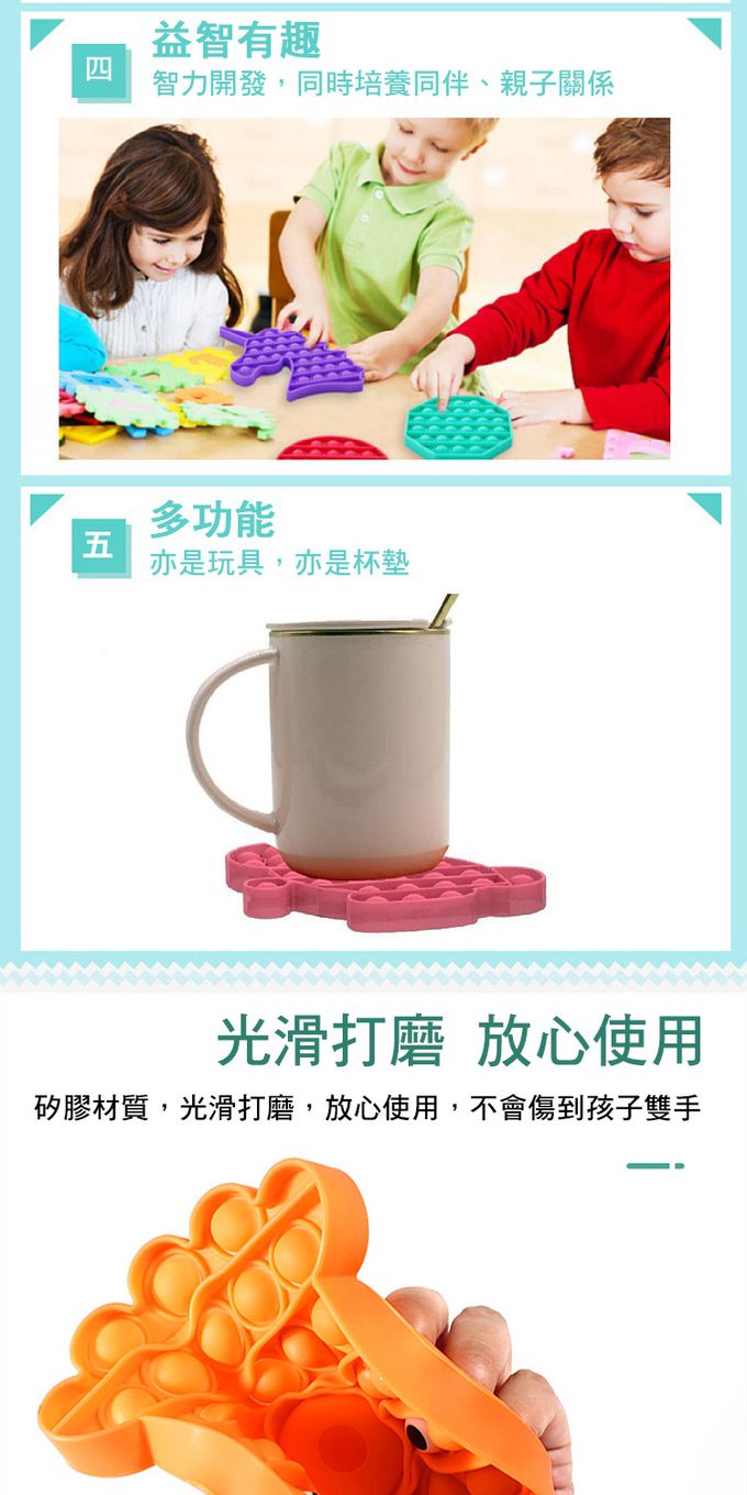 3.圓角矽膠高彈材質,不用擔心弄傷小朋友