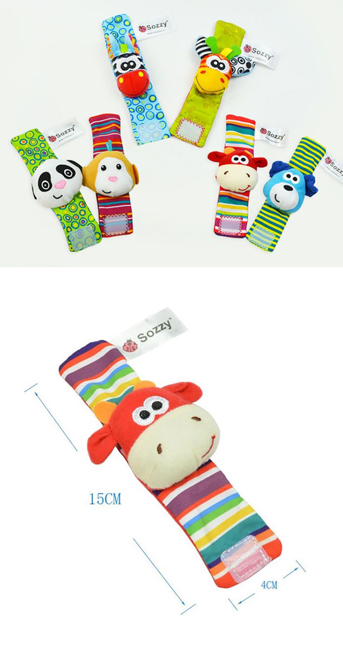 品名:2組4入-sozzy搖鈴手腕帶 可愛動物 嬰兒手環玩具