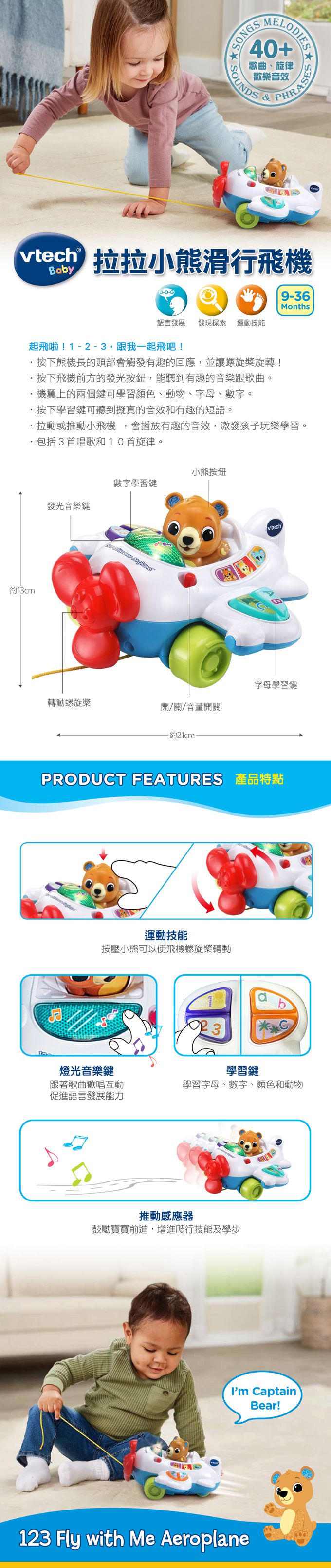 ‧拉動或推動小飛機 ,會播放有趣的音效,激發孩子玩樂學習。