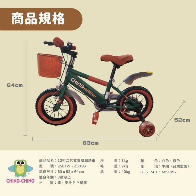 ** 此為DIY簡易快速安裝腳踏車,只需自行安裝輔助輪、龍頭、座椅、置物籃,前後煞車可再按照個人所需做微調即可。