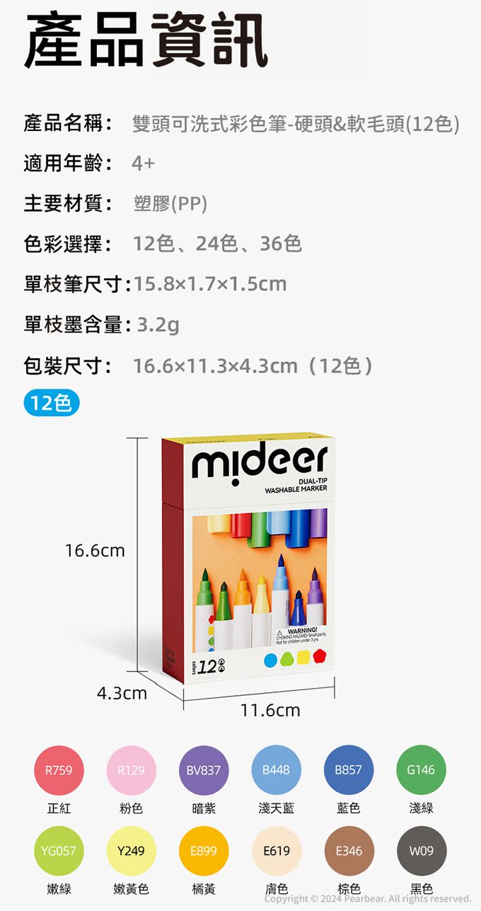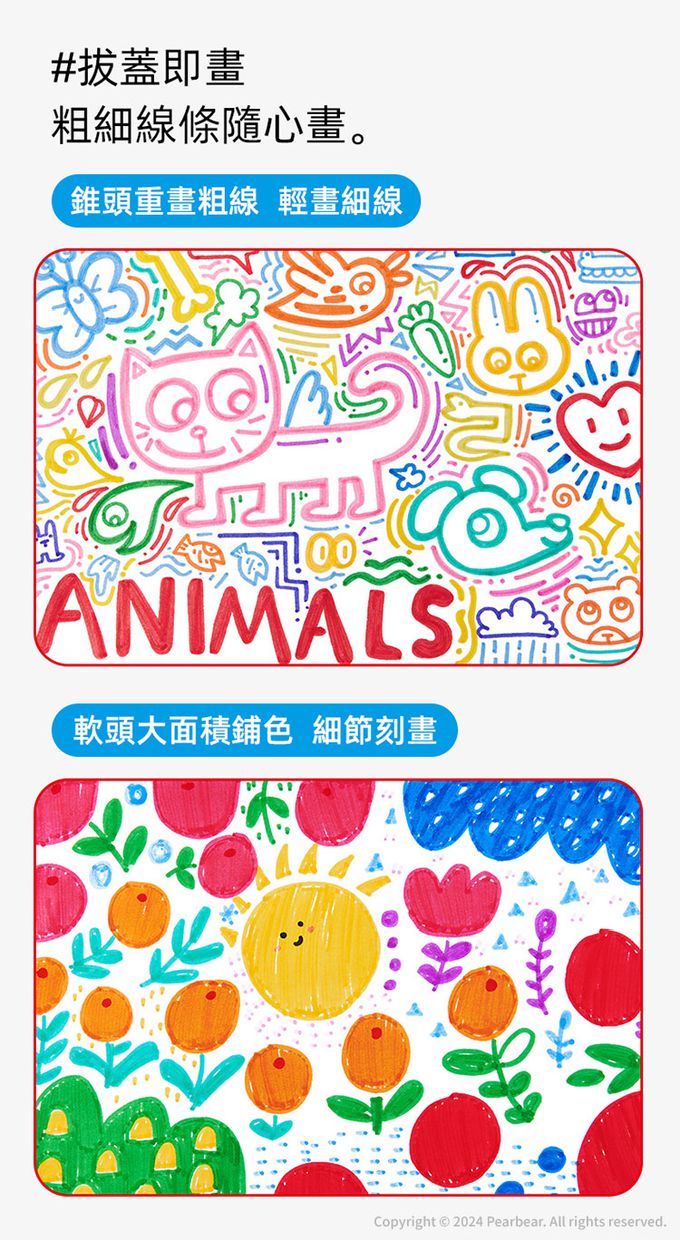 雙頭可洗式彩色筆-硬頭&軟毛頭(12色)