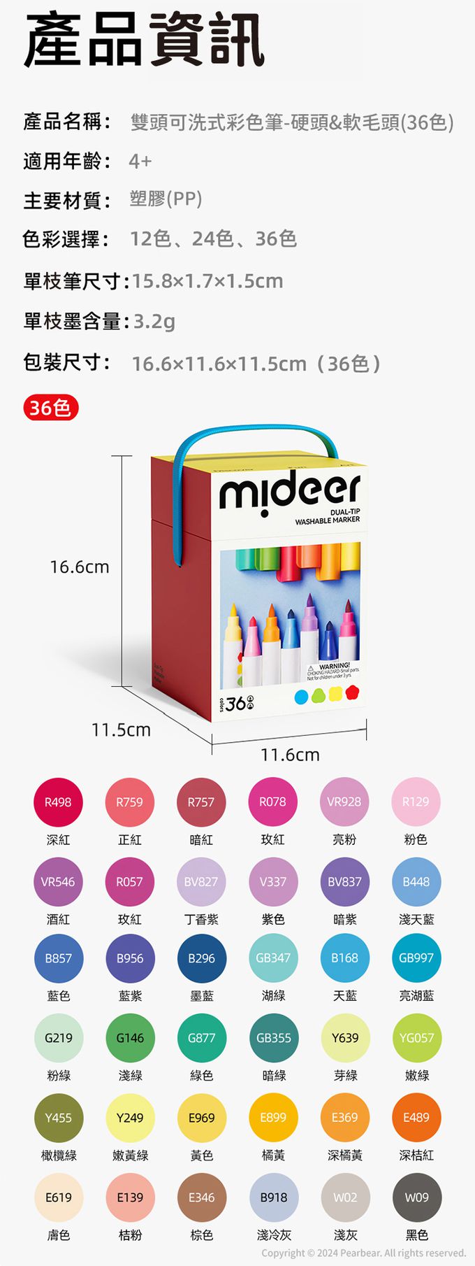 品名:雙頭可洗式彩色筆-硬頭&軟毛頭(36色)