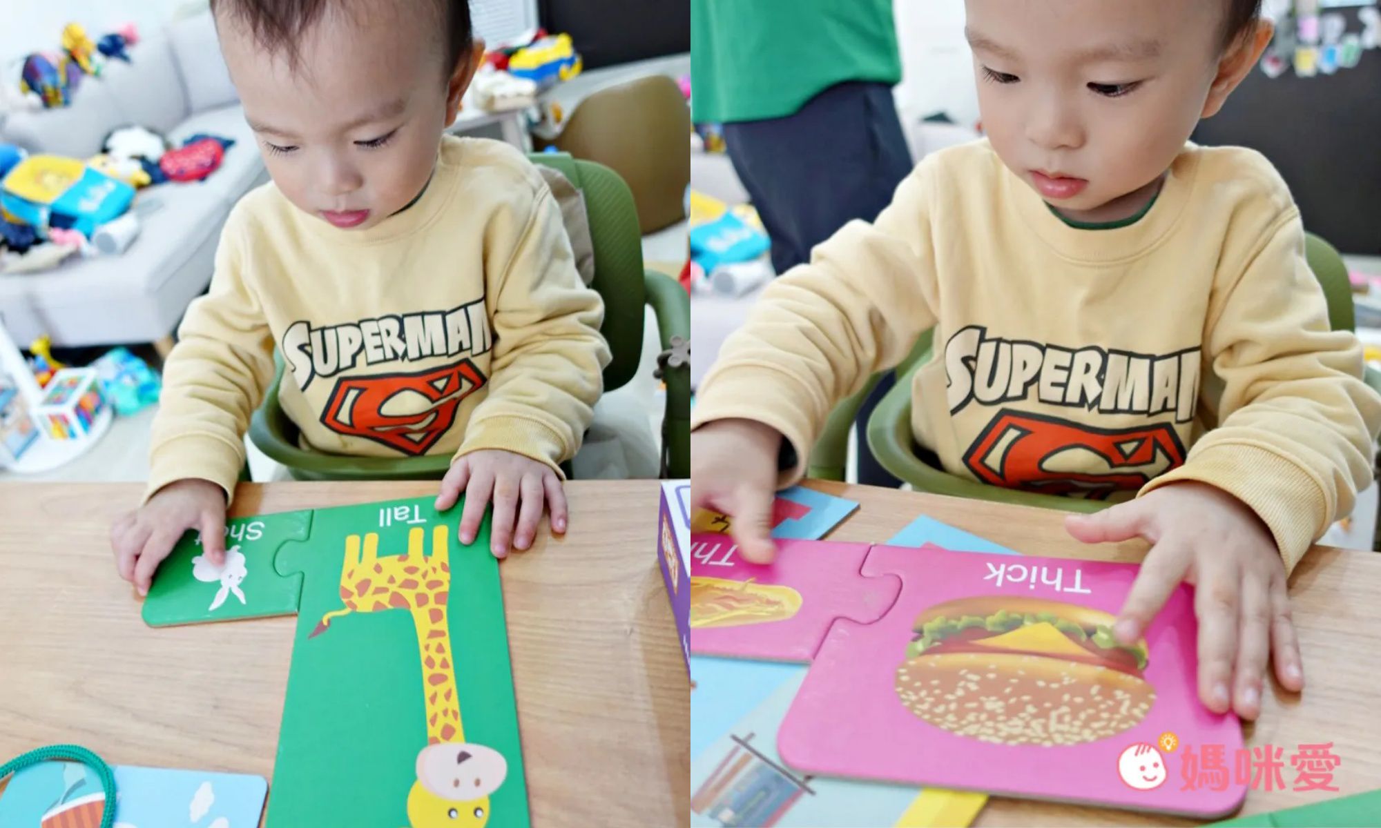 這種多元的方式來學英文單字、相對單字,用玩的來自然記憶,讓孩子不再死背,反而用很輕鬆的方式就學起來了~