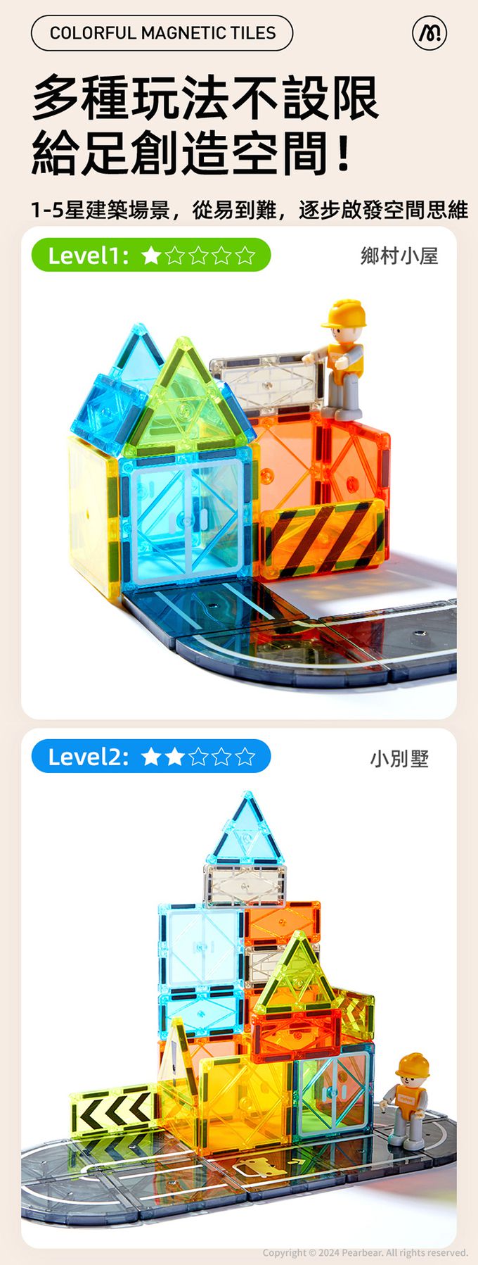 品名:多彩透光磁力片-建築工程(36PCS)