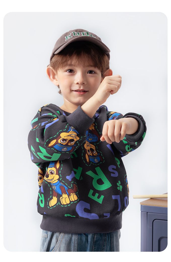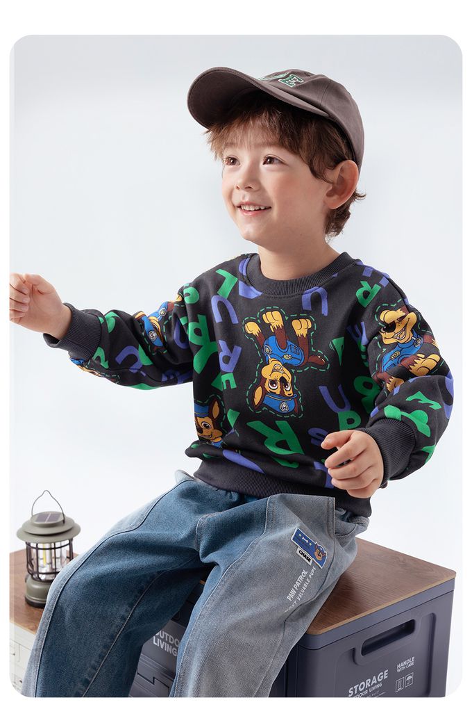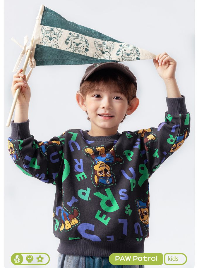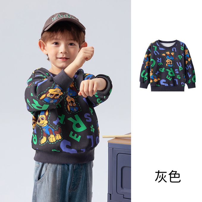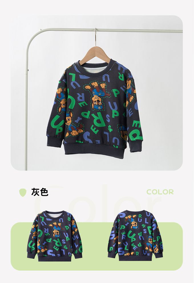 卡通汪汪隊圓領滿版印花長袖上衣/大學T-卡通人物阿奇-灰色