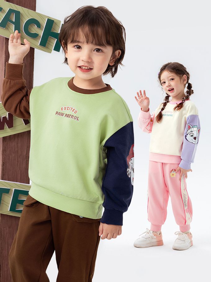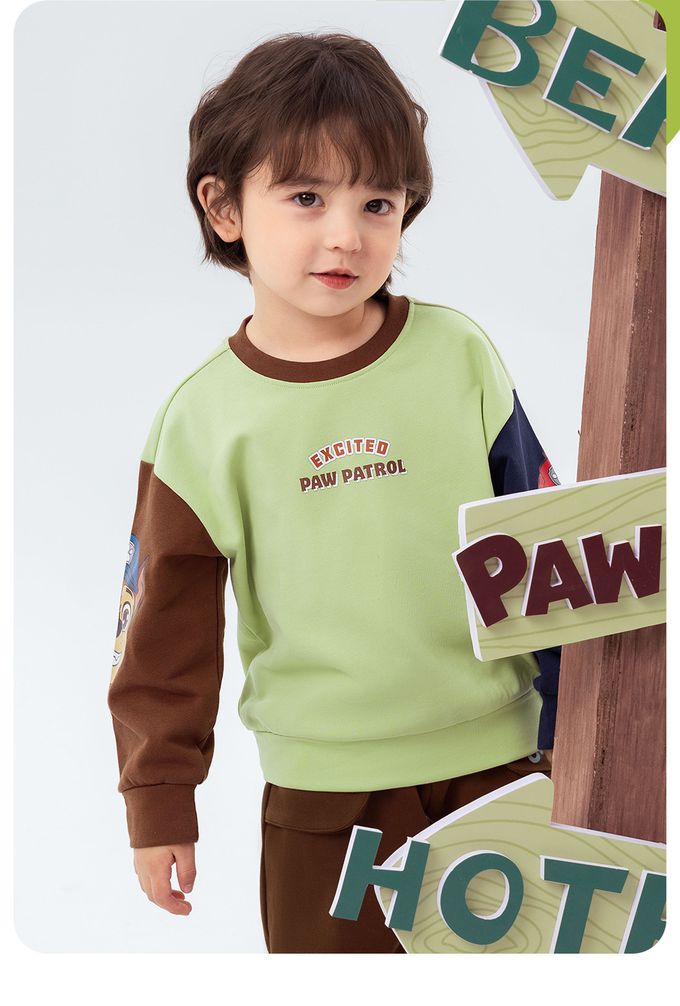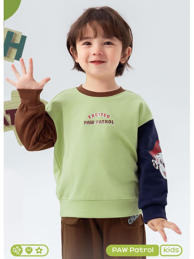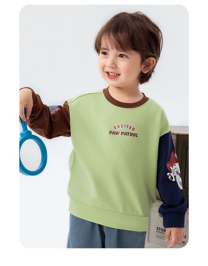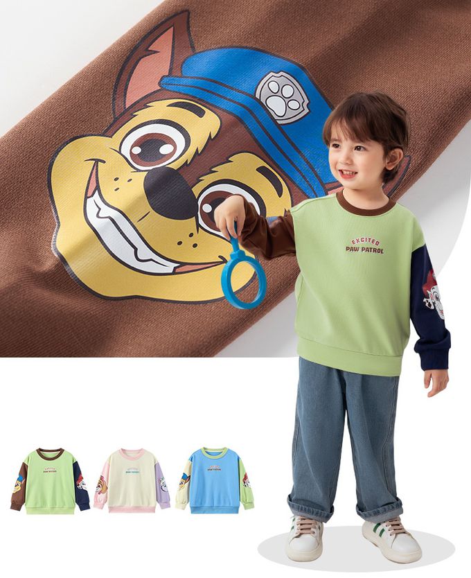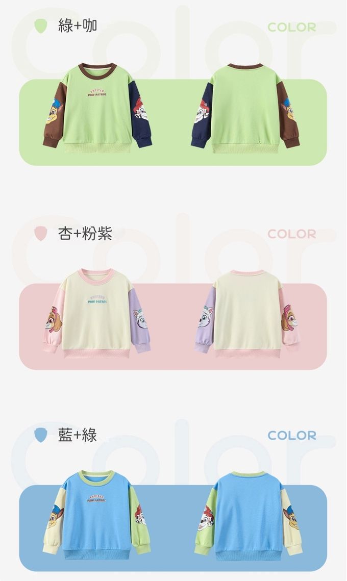 品名:卡通汪汪隊撞色袖印花長袖上衣/大學T