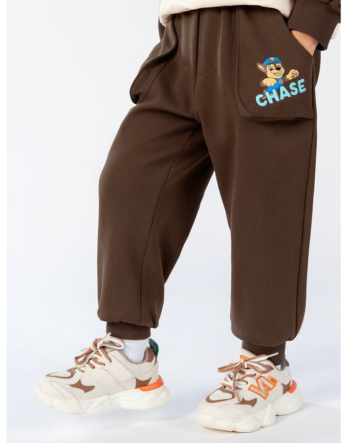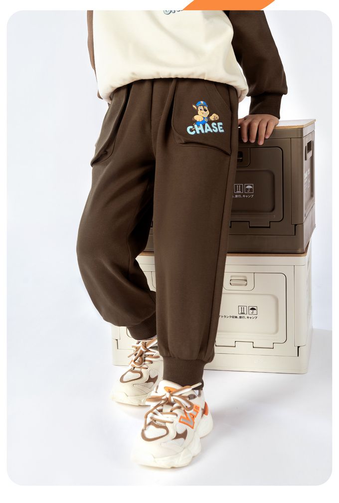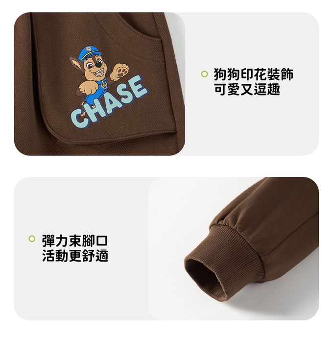卡通汪汪隊休閒口袋束口長褲-卡通人物阿奇-棕色