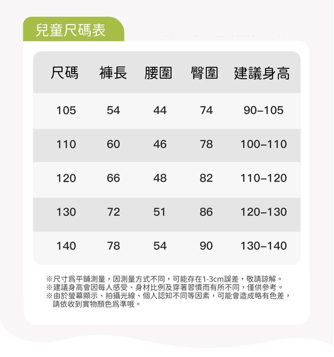 105cm、110cm、120cm、130cm、140cm