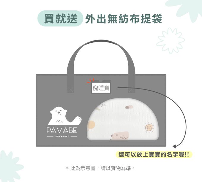 PAMABE - 4D兒童水洗透氣枕-HI FIVE北極熊 (50x30x4.5cm)-買就送無紡布外出提帶