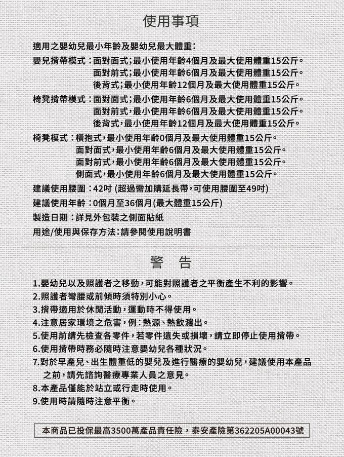 -新生兒親膚衣物(嬰幼兒包巾與背巾、包屁衣、學習褲、紗布衣等)。