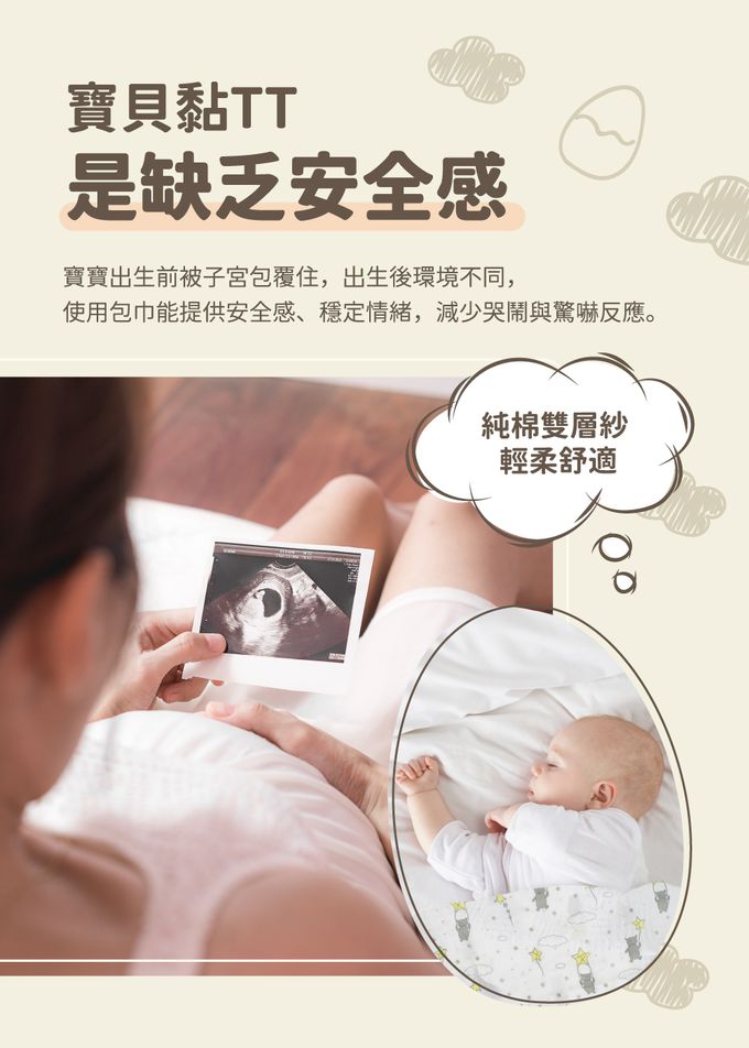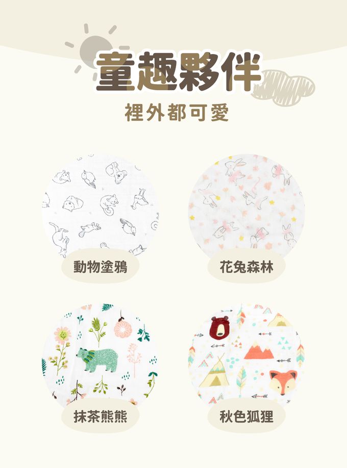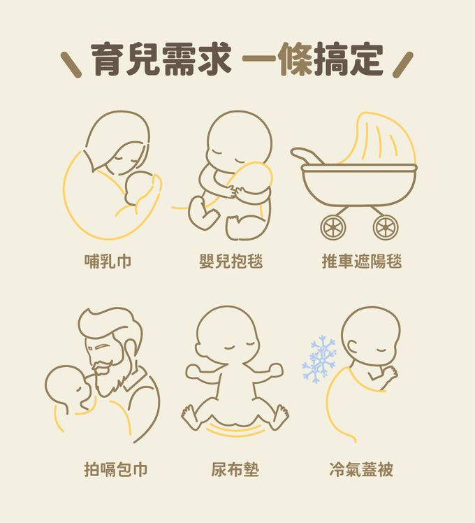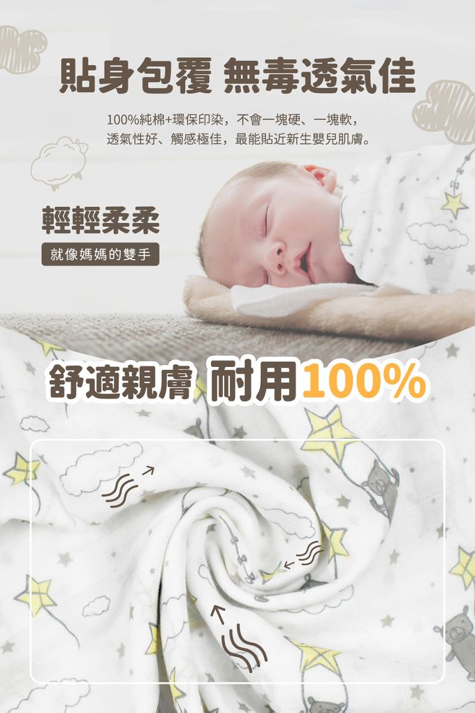 -新生兒親膚衣物(嬰幼兒包巾與背巾、包屁衣、學習褲、紗布衣等)。