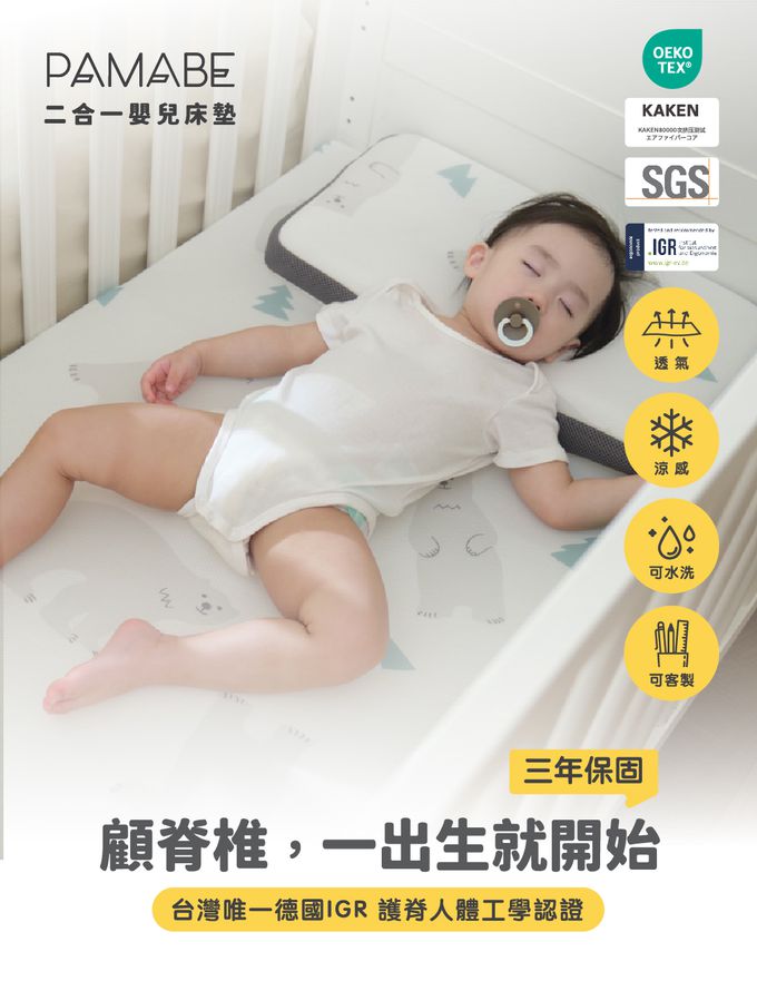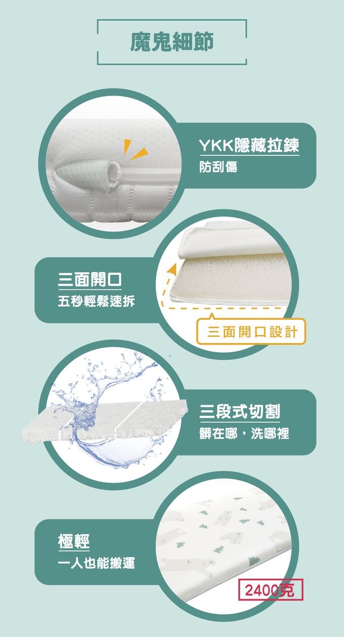 二合一水洗透氣嬰兒床墊-Hi Five北極熊-70x130x5cm