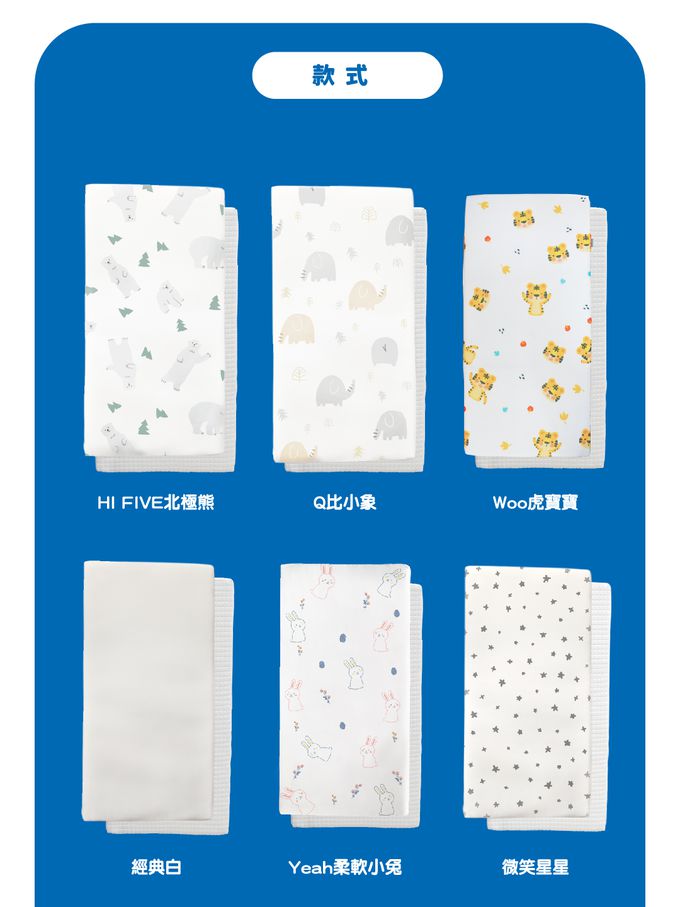 -新生兒親膚衣物(嬰幼兒包巾與背巾、包屁衣、學習褲、紗布衣等)。