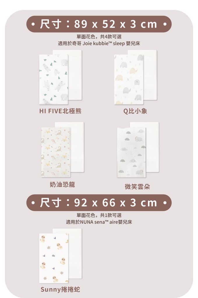 多功能薄墊-Q比小象(雙面鳥眼布)-89x52x3cm(適用於奇哥 Joie kubbie™ sleep)