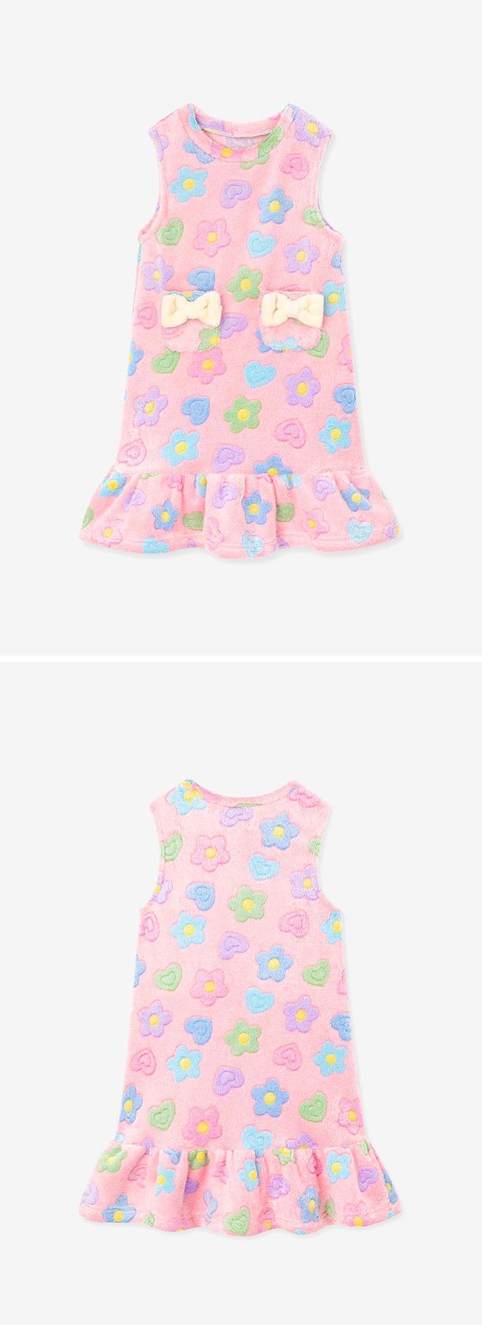 韓國 OZKIZ - 花朵愛心天鵝絨防踢洋裝/背心-粉