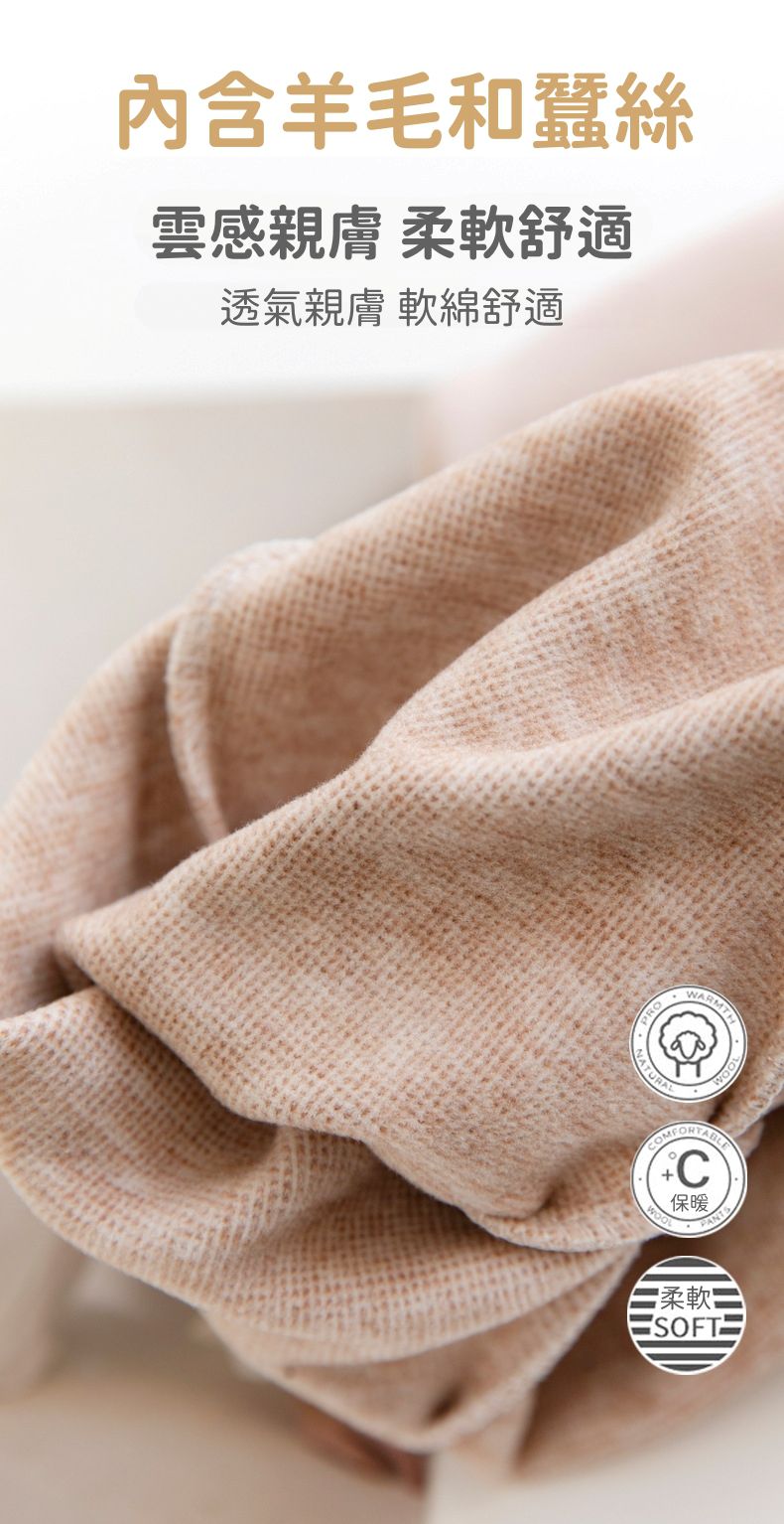 含羊毛和蠶絲,親膚透氣