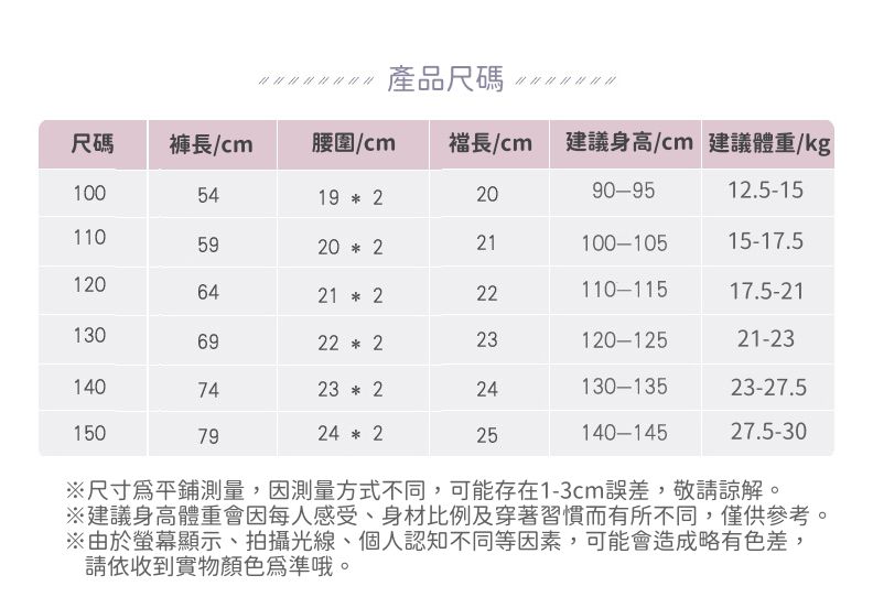 100cm、110cm、120cm、130cm、140cm、150cm