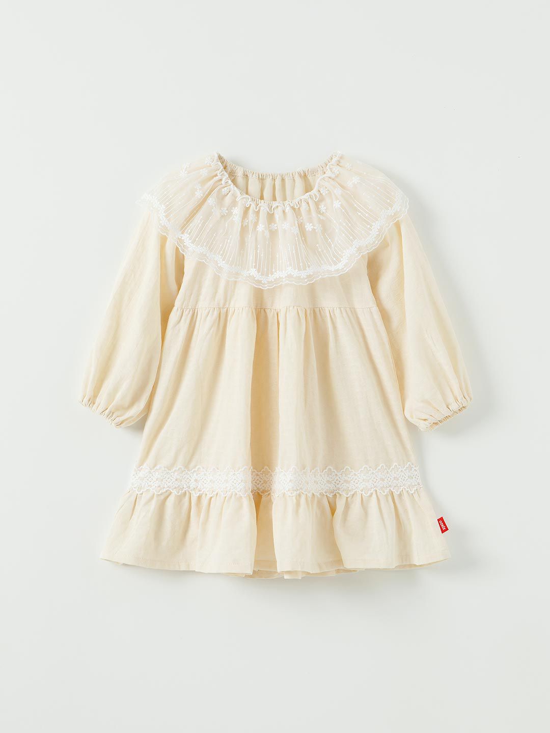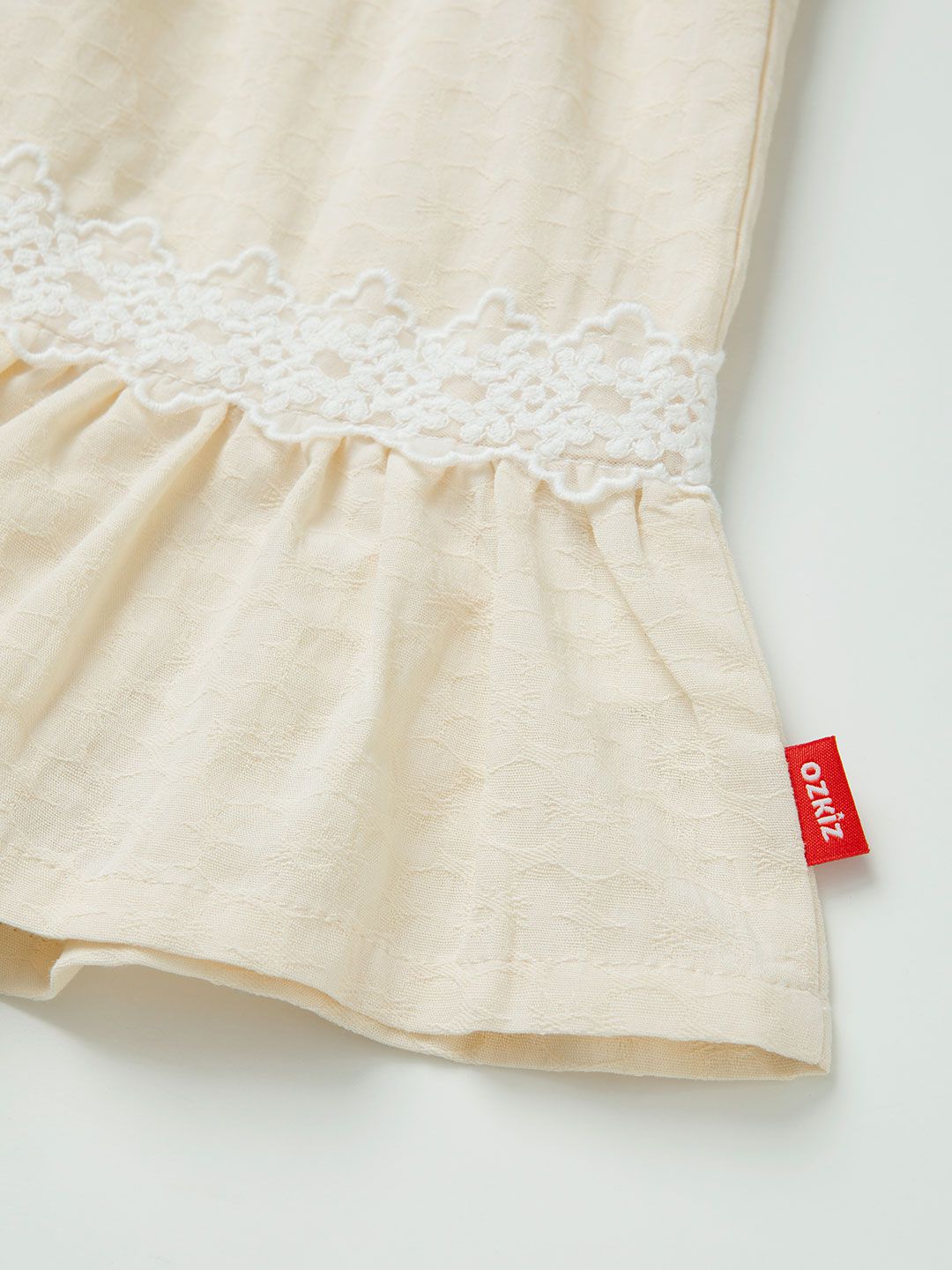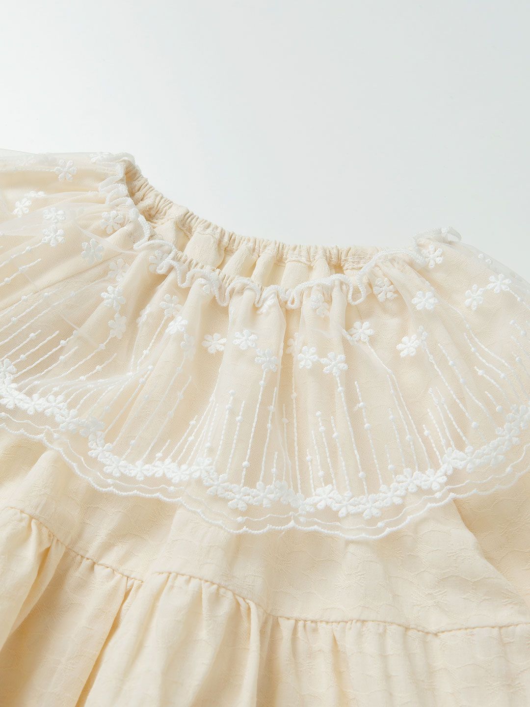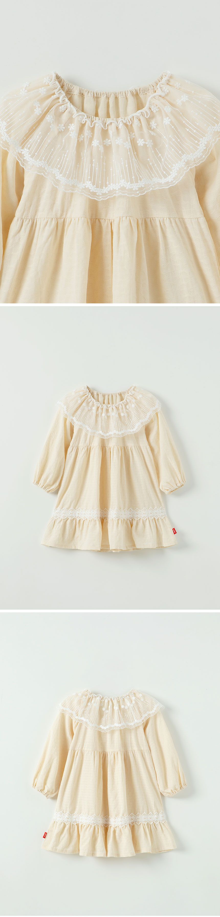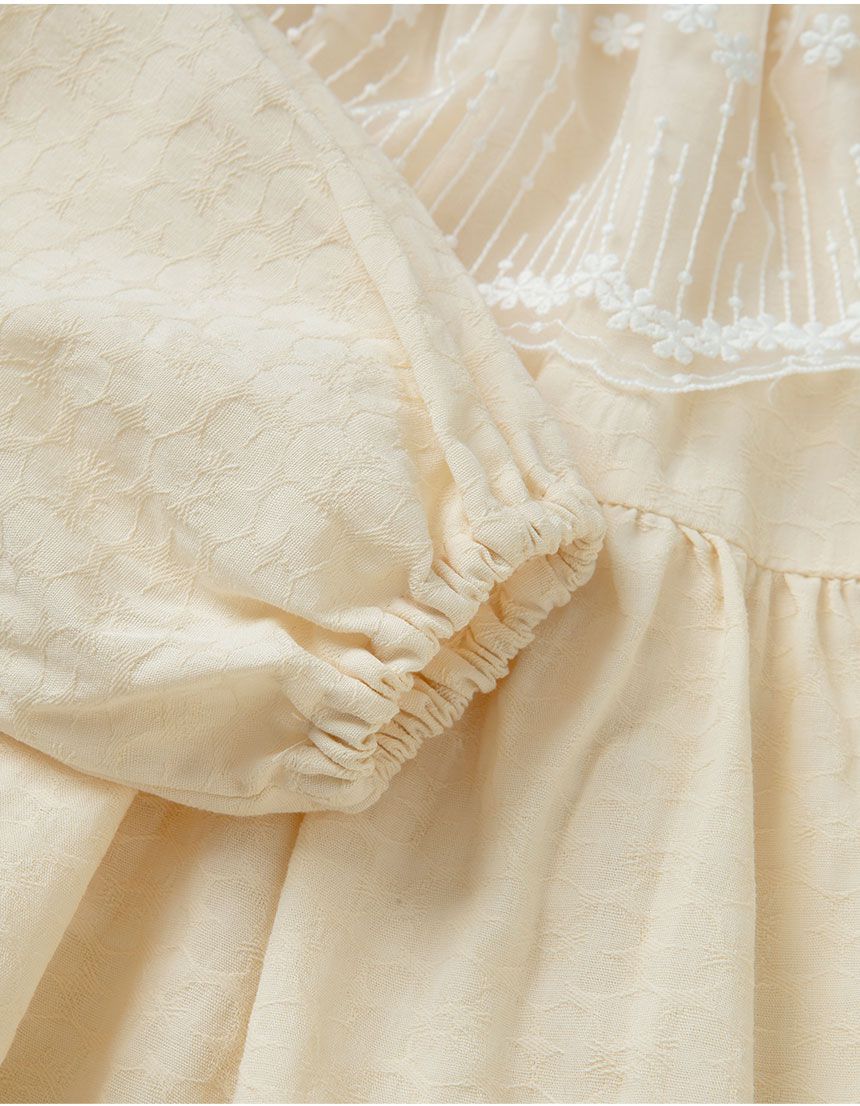 韓國 OZKIZ - 溫柔繡花蕾絲領拼接洋裝-米