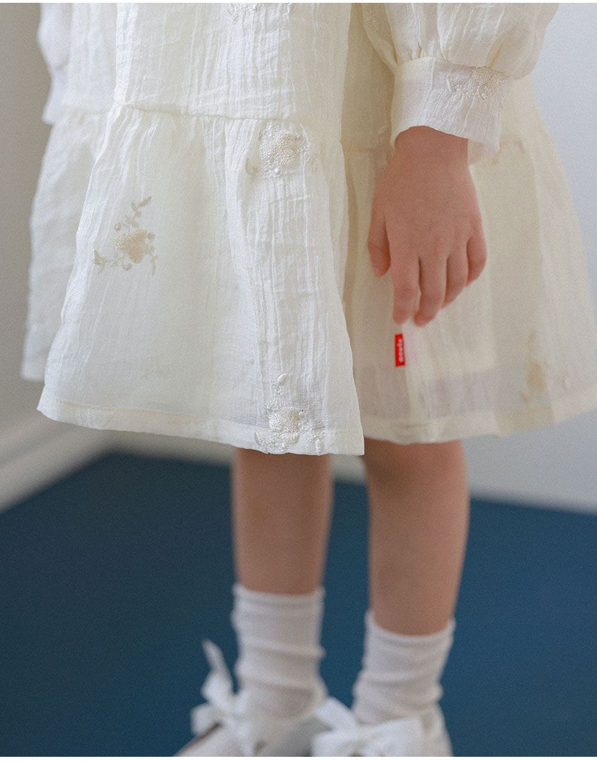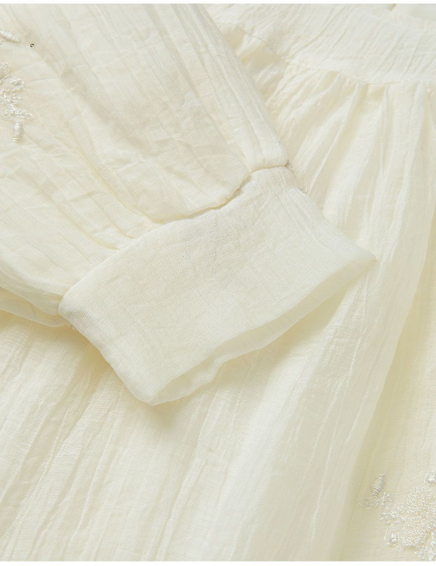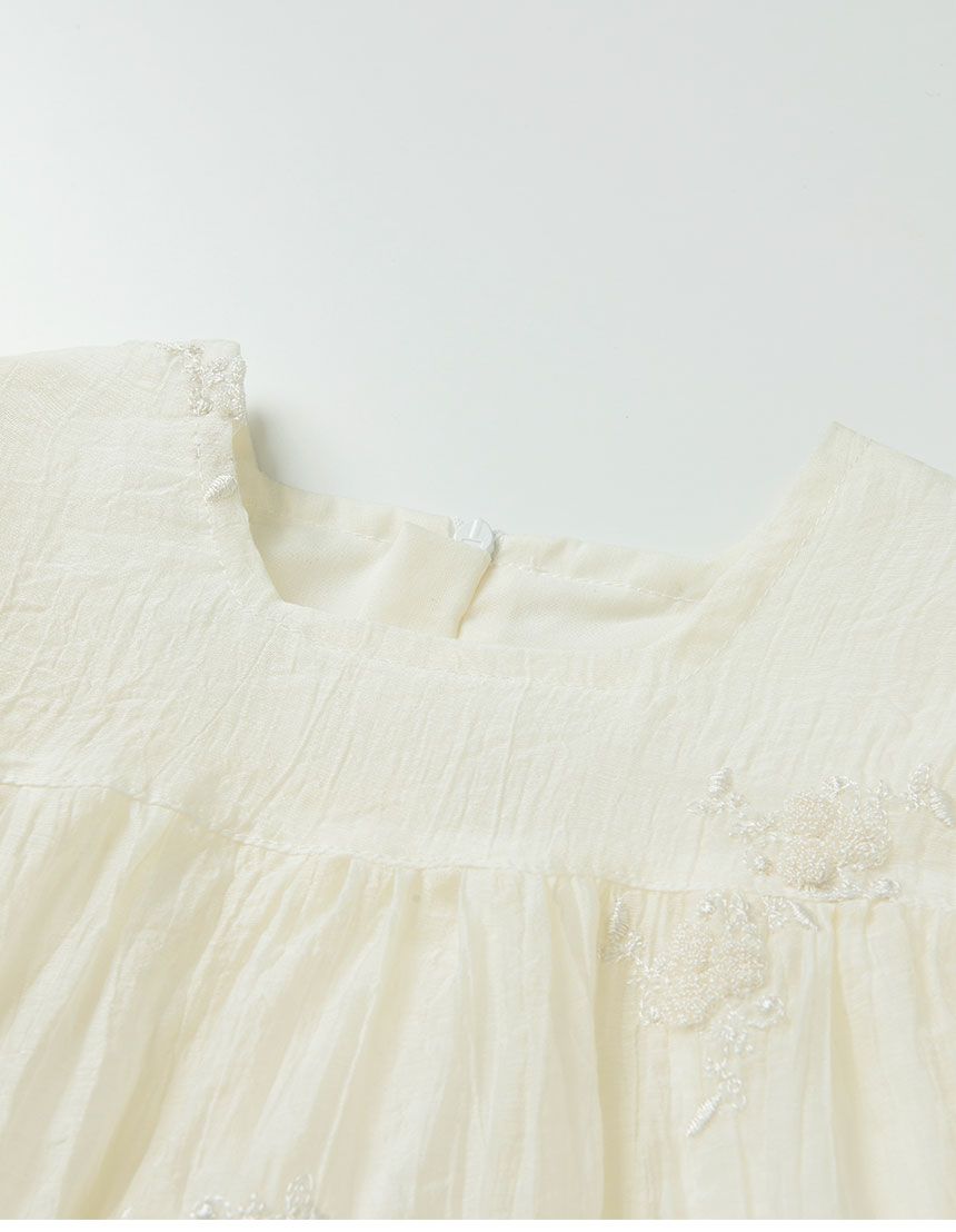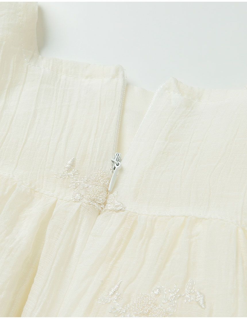 韓國 OZKIZ - 淡雅刺繡點綴飄逸洋裝-象牙白