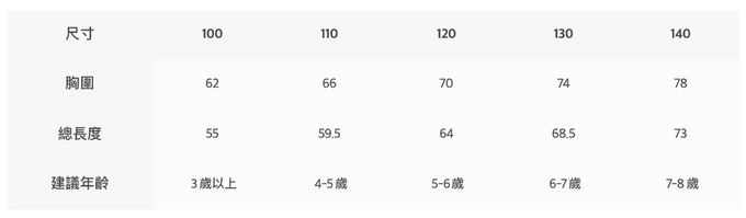 1. 尺寸表單位皆為公分(cm),實際尺寸會因布料彈性、水洗、測量起迄點等因素略有誤差。購買前,建議參考寶貝現有的衣物尺寸做對照。