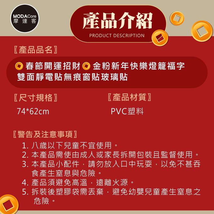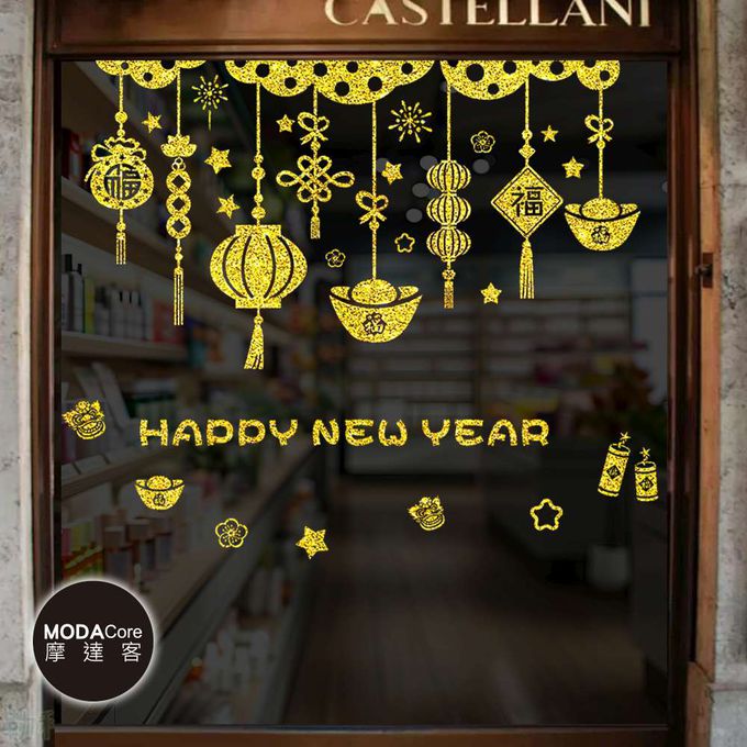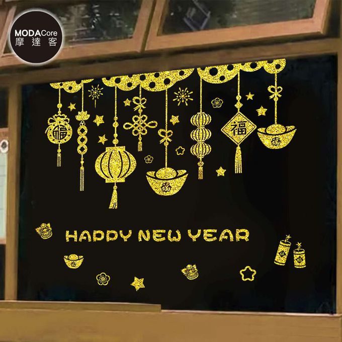 品名:◉春節開運招財◉金粉新年快樂燈籠福字雙面靜電貼無痕窗貼玻璃貼