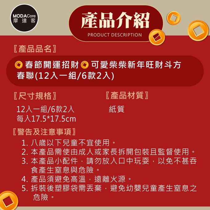 品名:◉春節開運招財◉台灣製MIT可愛柴柴新年旺財斗方春聯(12入一組/6款2入)