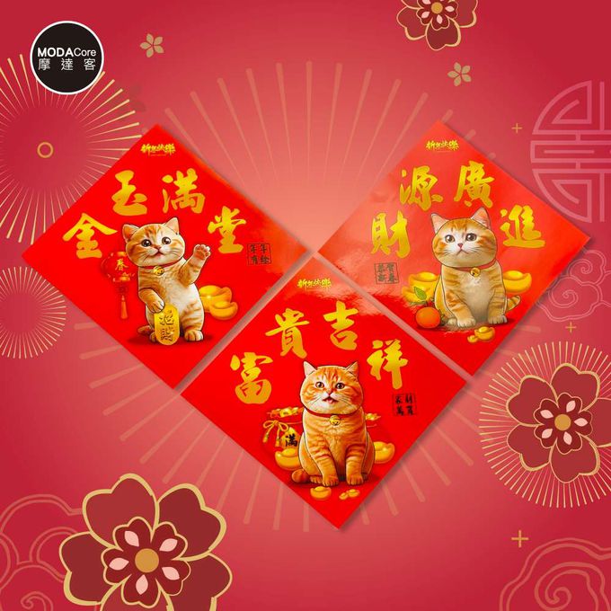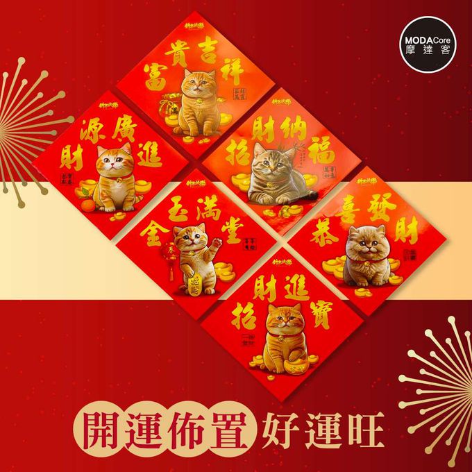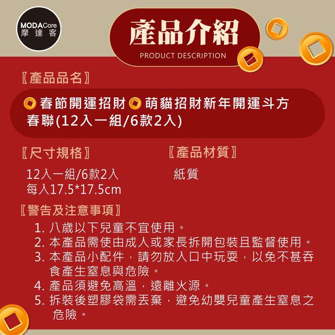 品名:台灣製MIT萌貓招財新年開運斗方春聯(12入一組/6款2入)