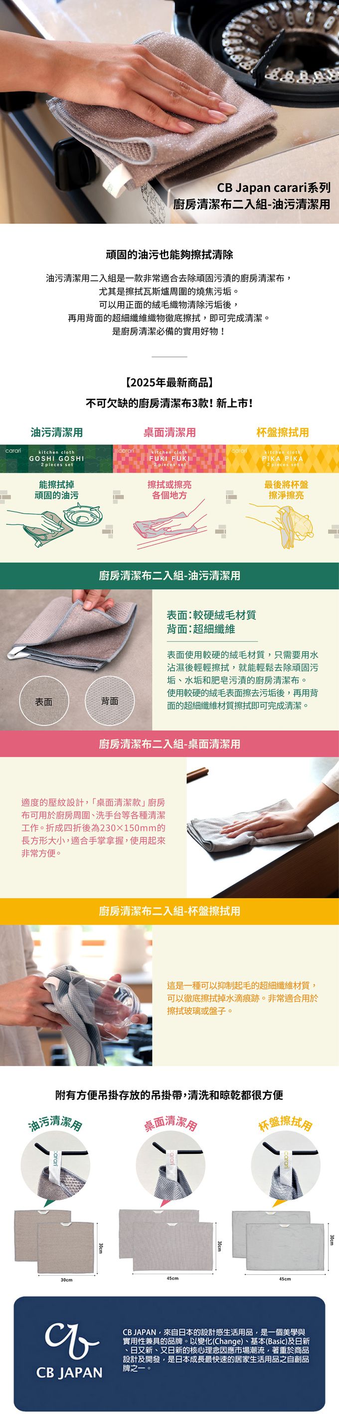 油污清潔用二入組是一款非常適合去除頑固污漬的廚房清潔布,尤其是擦拭瓦斯爐周圍的燒焦污垢。可以用正面的絨毛織物清除污垢後,再用背面的超細纖維織物徹底擦拭,即可完成清潔。是廚房清潔必備的實用好物!